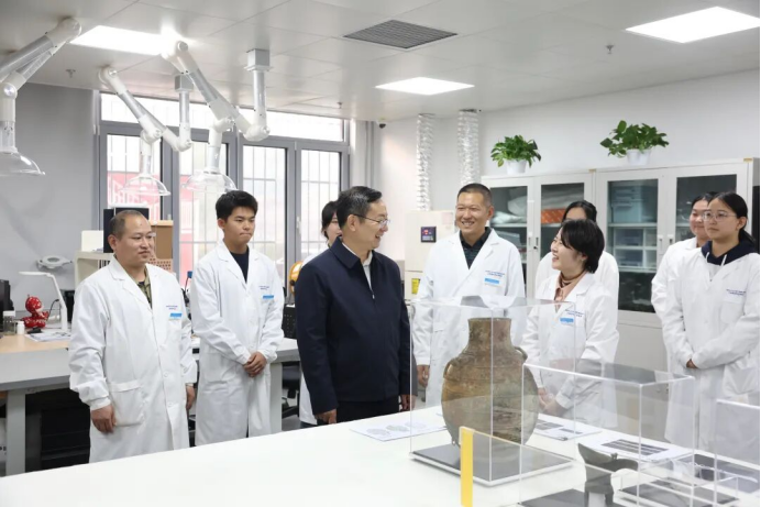 随后,高翔来到科技考古与文化遗产保护重点实验室,了解文物保护修复、科技考古创新等情况,同科研人员深入交谈。他指出,中国自古以来就是统一的多民族国家。党的二十届四中全会对深入实施中华优秀传统文化传承发展工程,推动文化遗产系统性?;さ茸鞒鲋匾渴?。发掘历史、传承文明是考古工作的神圣使命,考古工作者必须始终站在捍卫国家统一、实证中华民族多元一体的角度开展研究,不断提高文物研究阐释能力,加快构建中国考古学自主知识体系。要加大科技考古力度,深化多学科交叉融合,创新科研组织方式和研究范式,做好考古学研究与人工智能技术的结合,建设好、发展好科技考古与文化遗产保护重点实验室,传承好、发扬好中华优秀传统文化。