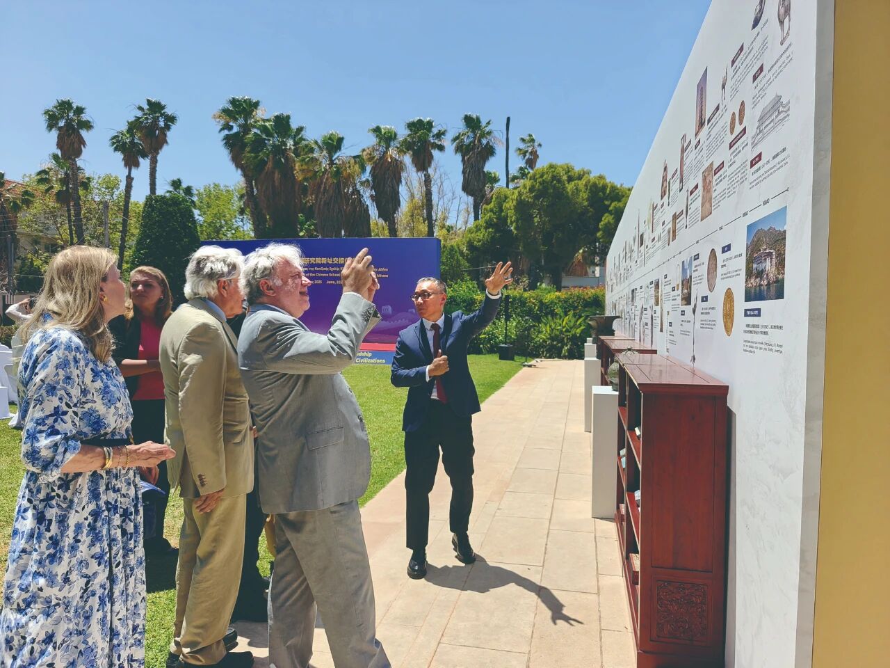 外国嘉宾参观“开启东西文明互鉴之门”主题展览。本报驻雅典特派记者 杨雪/摄